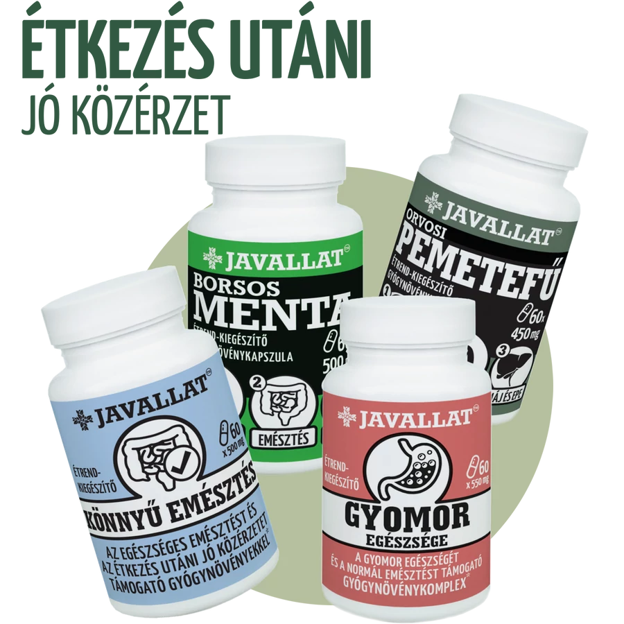 - Az Étkezés utáni jó közérzet csomagban lévő étrend-kiegészítőkből az étkezések előtt 1-1 kapszulát ajánlott fogyasztani, naponta 2 alkalommal.